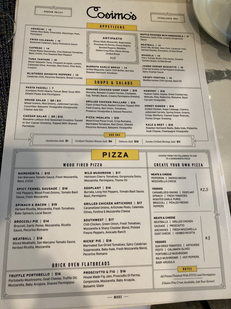 Cosimo's On Union is a Venues & Event Spaces, Pizza, and Italian restaurant located in Newburgh, NY. With a wide range of offerings, including vegan and vegetarian options, this restaurant prides itself on its classy yet casual atmosphere. From their appetizers like the Caprese and Crispy Polenta to their delicious Wood Fired Pizzas such as the Quattro Stagio Ni and Grilled Eggplant, the menu is sure to satisfy all taste buds. Customers rave about the flavorful dishes, with one praising the calamari and burger with truffle fries. The service is described as warm and attentive, adding to the overall dining experience. With reasonable prices and a welcoming environment, Cosimo's On Union is a must-visit for those in the area looking for a delicious Italian meal.